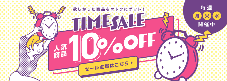 ![]() ![]() 10%OFF | 毎月 | 公式サイトにて確認 | 対象商品10%OFF | 毎月季節のトレンド商品が10%OFF |