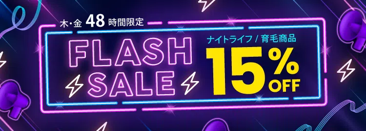 ![]() ![]() 最大15%OFF | 毎週木・金限定(48時間限定) | ナイトライフ・育毛商品 | 対象商品15%OFF | – |