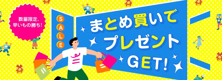 ![]() ![]() 無料プレゼント | 不明(期間限定) | 公式サイトにて確認 | まとめ買いで対象商品無料プレゼント | 数量限定 |